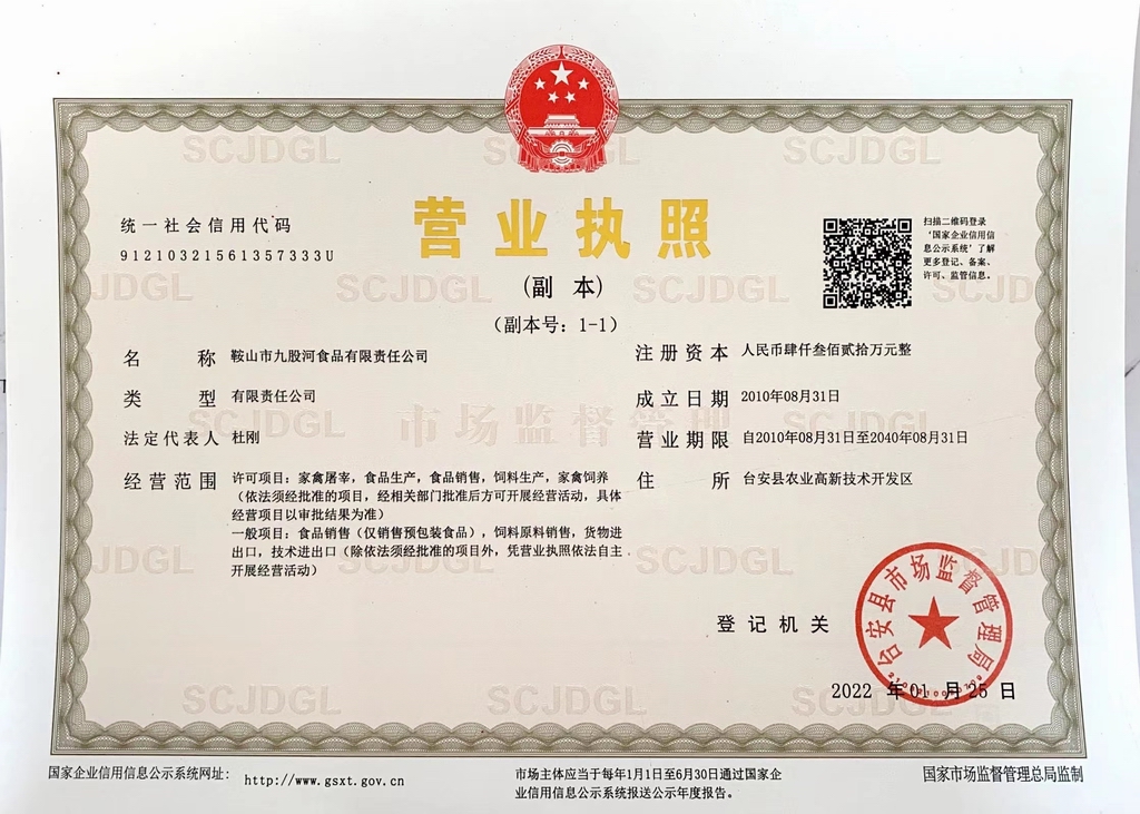 1997年丨九股河誕生于遼寧臺安,成立臺安縣九股河農(nóng)業(yè)發(fā)展有限公司2003年丨九股河走進(jìn)錦州市,在凌海成立凌海九股河食品有限公司2008年丨成立凌海九股河飼料有限公司2010年丨九股河與禾豐合作后,成立鞍山市九股河食品有限責(zé)任公司,從此,禾豐九股河走進(jìn)了高速發(fā)展之路2011年丨繼續(xù)在遼西闊步,成立葫蘆島九股河食品有限公司同年,臺安縣九股河農(nóng)業(yè)發(fā)展有限公司養(yǎng)殖部成立,按下規(guī)模化籠養(yǎng)小區(qū)建設(shè)的快進(jìn)鍵2